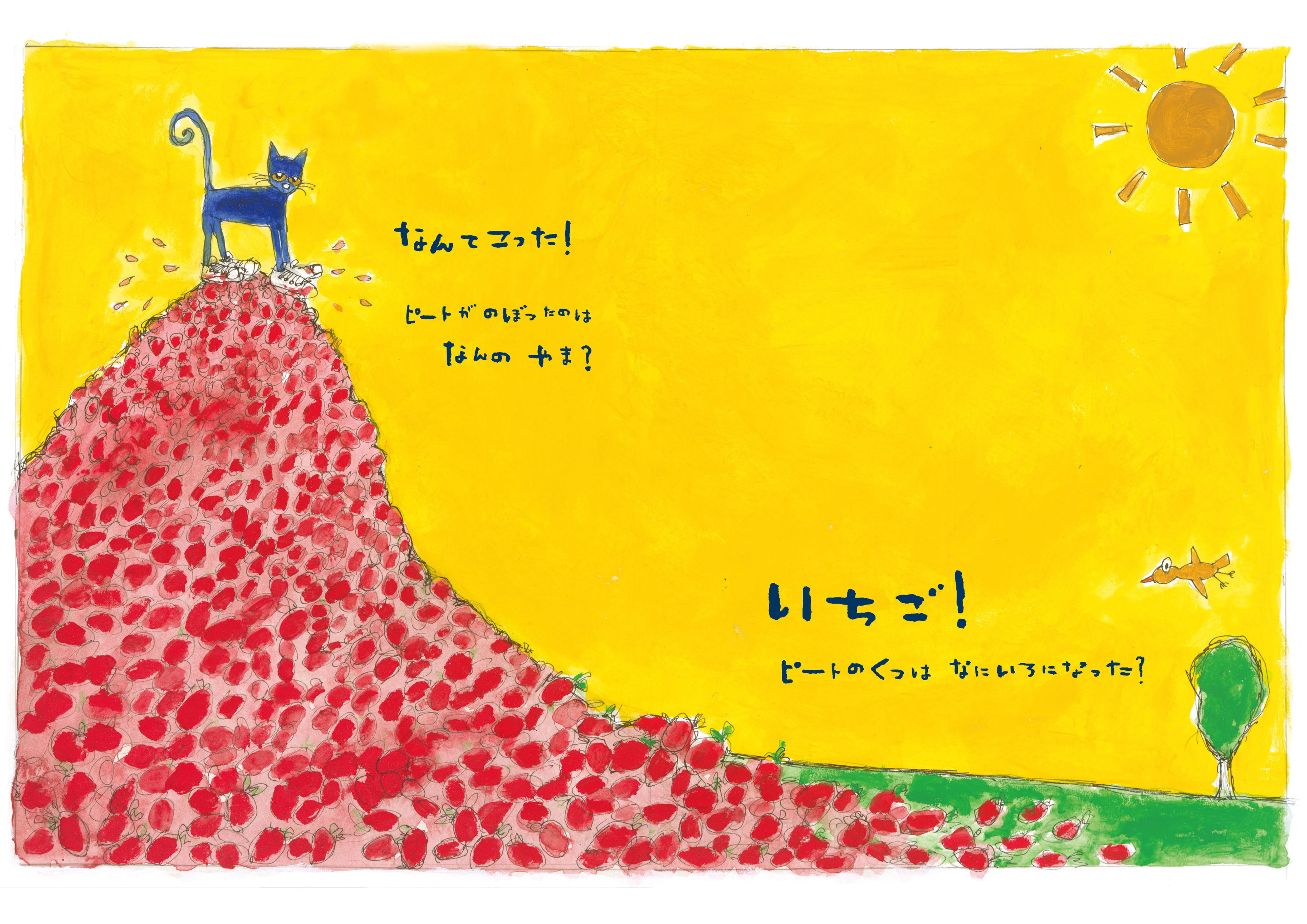 ところが、イチゴの山に登ってしまい、靴が真っ赤に。