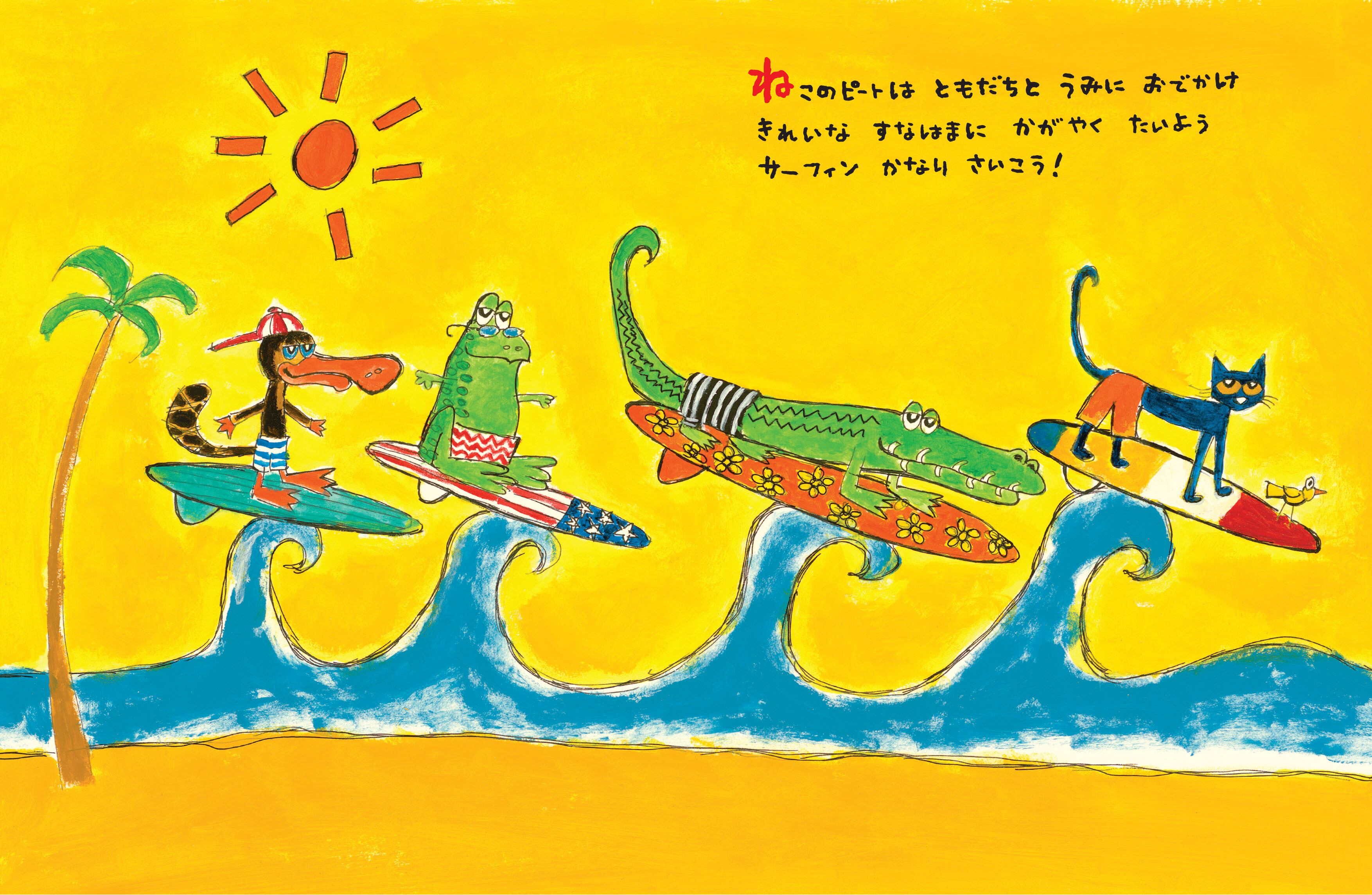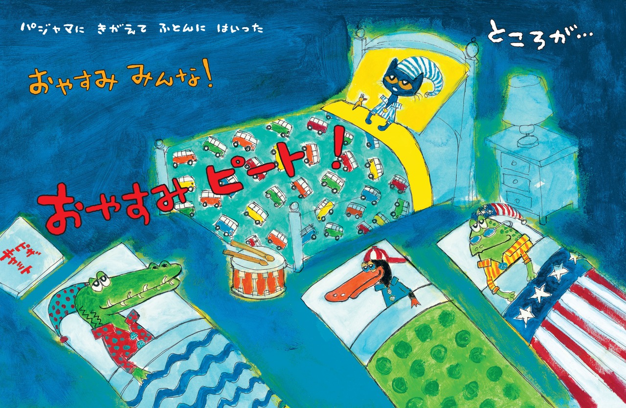 日が暮れるまで遊んだけれど、まだまだ遊び足りないねこのピートと仲間たちは、ピートの家へ。夜遅くまで遊んで、ようやく寝ることにしたけれど、まだまだ寝たくない子もいるみたいで。カラフルなイラストと軽快なリズムで楽しく、ポジティブな夢を見させてくれる絵本。シリーズ4作目。