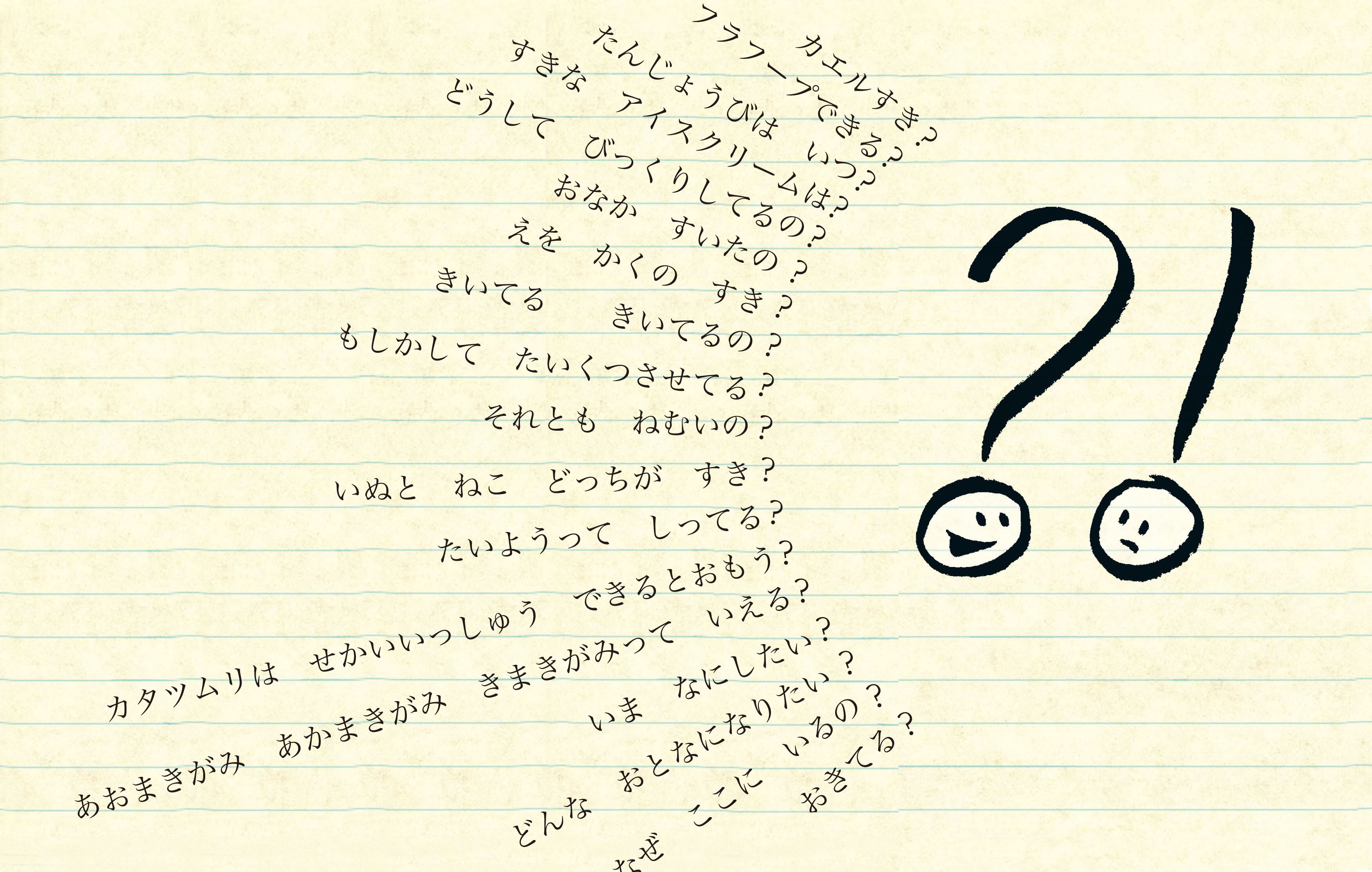 ある日、クエスチョンマーク(?)と出会い、次々と質問を浴びせられます。