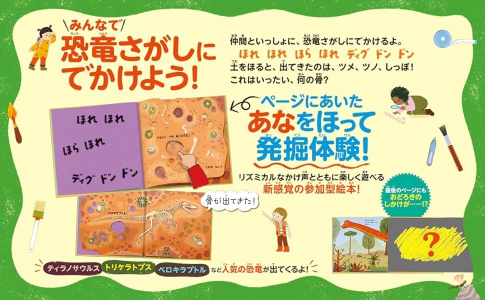 出てくる恐竜を想像しながら指で穴を掘って、化石発掘を疑似体験できます。