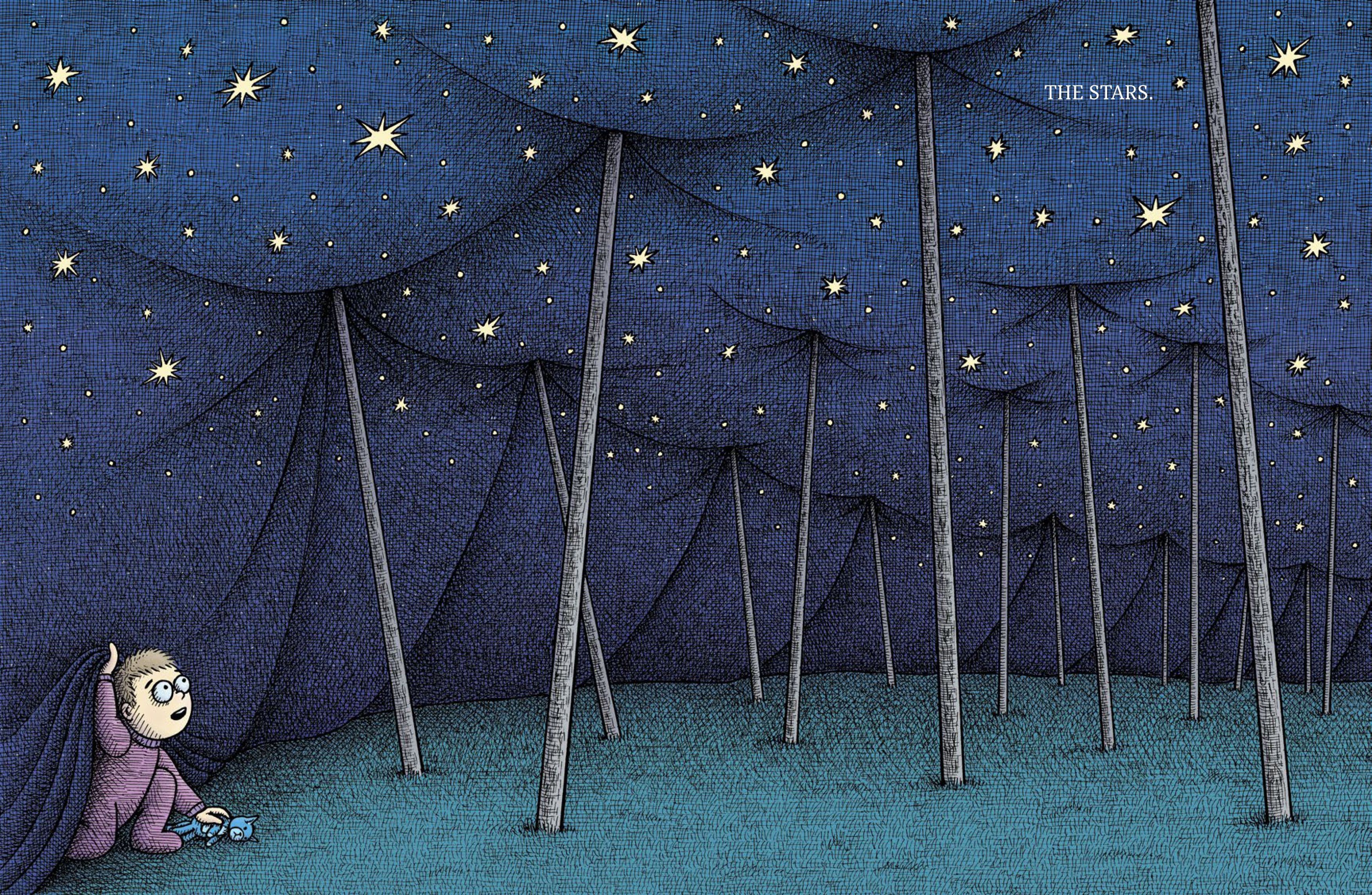 ワトソンは暗闇が怖くて眠れない。ふと、ふとんの下から漏れる不思議な光に気が付いてそっと覗いてみると、そこには無限の星空が広がっているのだった。夜更けに広がる想像力の世界を美しくちょっぴりユーモラスに描く絵本。ニューヨークの人気イラストレーター、ランディス・ブレア初の絵本。発売と同時に全米の書評誌で大絶賛! 現代の『かいじゅうたちのいるところ』であると評されている。